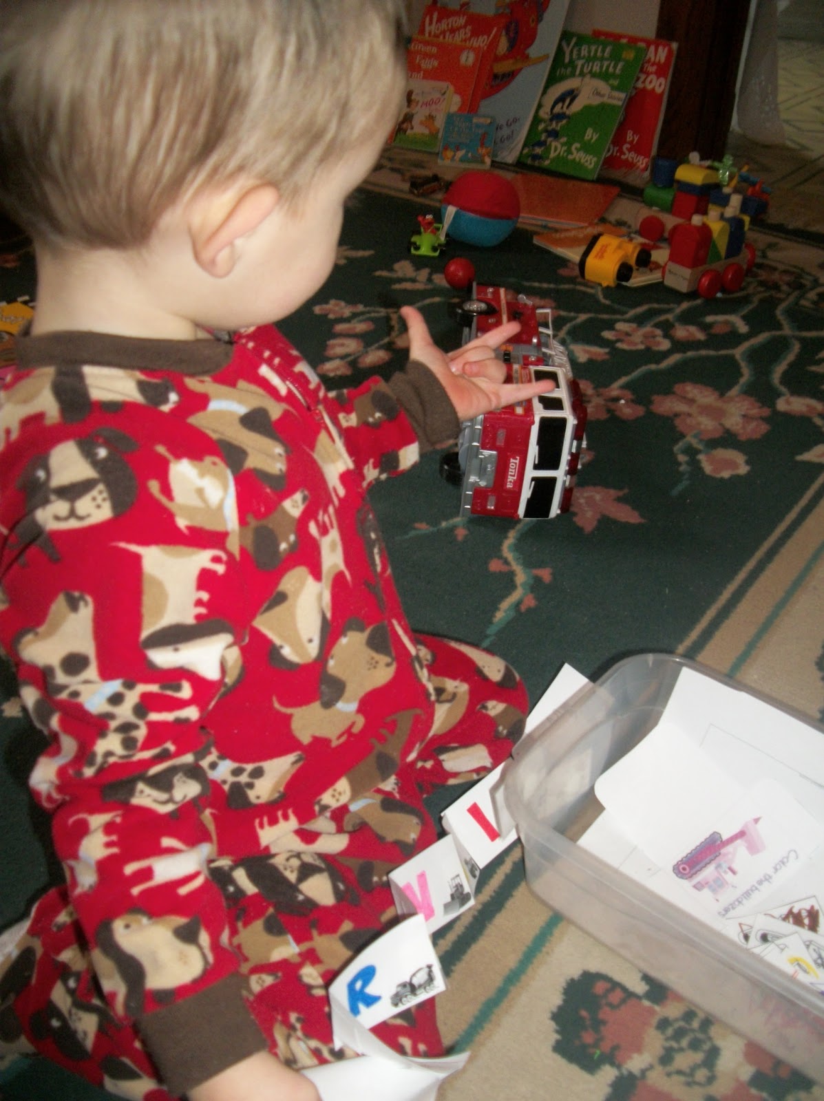 A few days we did different truck puzzles - he's very much a puzzle king and would really do them all day. He's getting very good at them too and loves saying each truck's name!